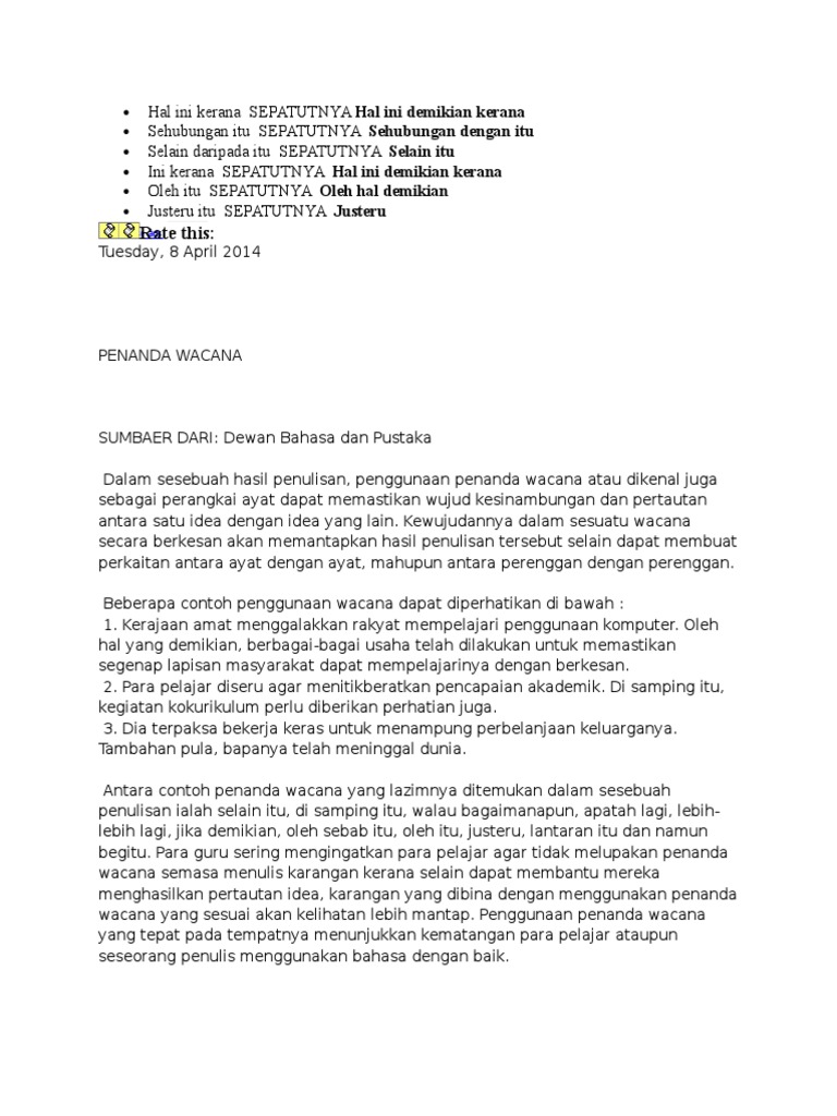 . Jika pengarang ingin menghilangkan beberapa kata dalam kutipannya maka kata-kata yang dibuang tadi diganti dengan tanda tiga titik. Contoh yang ketara yang paling dekat dengan kita ialah PENANDA WACANA UNTUK KESIMPULAN KARANGAN. Setiap tahun pada tarikh tersebut seluruh dunia meraikan Hari Alam Sekitar bermatlamat untuk mempertingkatkan tahap kesedaran masyarakat dunia terhadap isu alam sekitar serta mempertingkatkan tindakan dan penglibatan mereka terhadap sebarang perubahan yang.